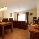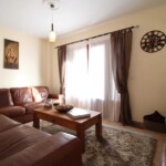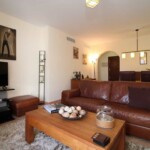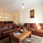 Open Lounge / dining room With dining table and chairs double leather sofas side table an sideboard unit, coffee table and rug.TV internet and Air Conditioning leading to the