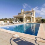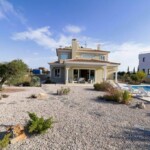 The high-vaulted entrance leads to the living room and dining area which both have patio doors leading to terraces with beautiful views of the private swimming pool, gardens and golf course. The kitchen is fully equipped. There are 5 bedrooms with 2 en-suite bathrooms. Each bedroom has fitted wardrobes with the Master bedroom having a walk-in closet area. The villa is sold furnished.